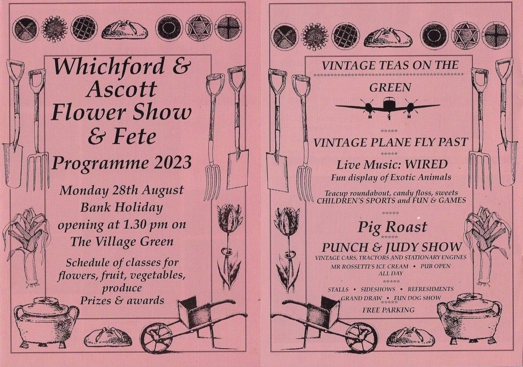 The Whichford & Ascott Flower Show & Fete will be held on Bank Holiday Monday 28th August 1.30 on Whichford Village Green.