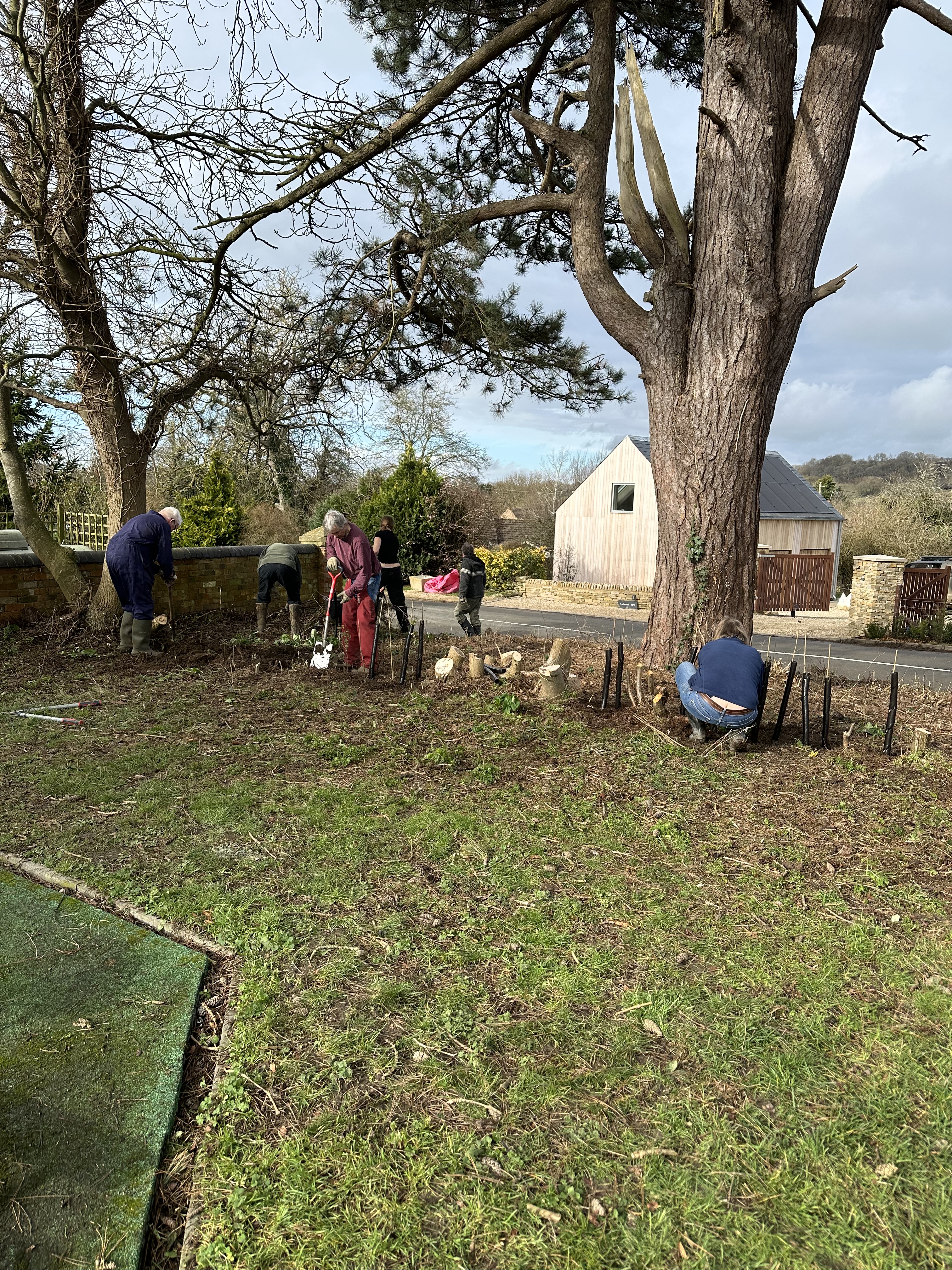 Yesterday (Feb 10th), on a bright and for once dry (!) Saturday morning, a group of 20 or so volunteers from the village started work on the first phase of the ‘Aspirational Plan’ for the Hall / Playing field.