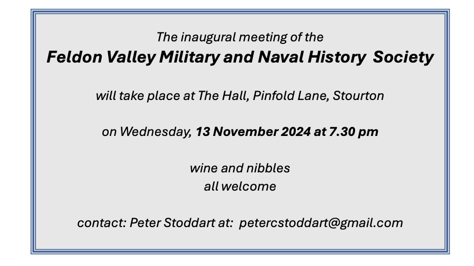Inaugural Meeting of the Feldon Valley Military and Naval History Society Wednesday November 13th at the Hall at 7.30 pm