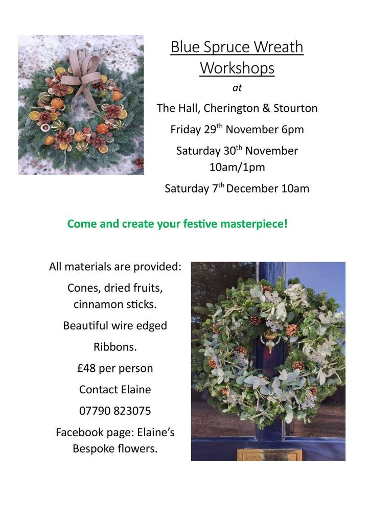 Elaine’s Bespoke Flowers are running several Christmas Wreath Making Workshops at The Hall on the following dates: