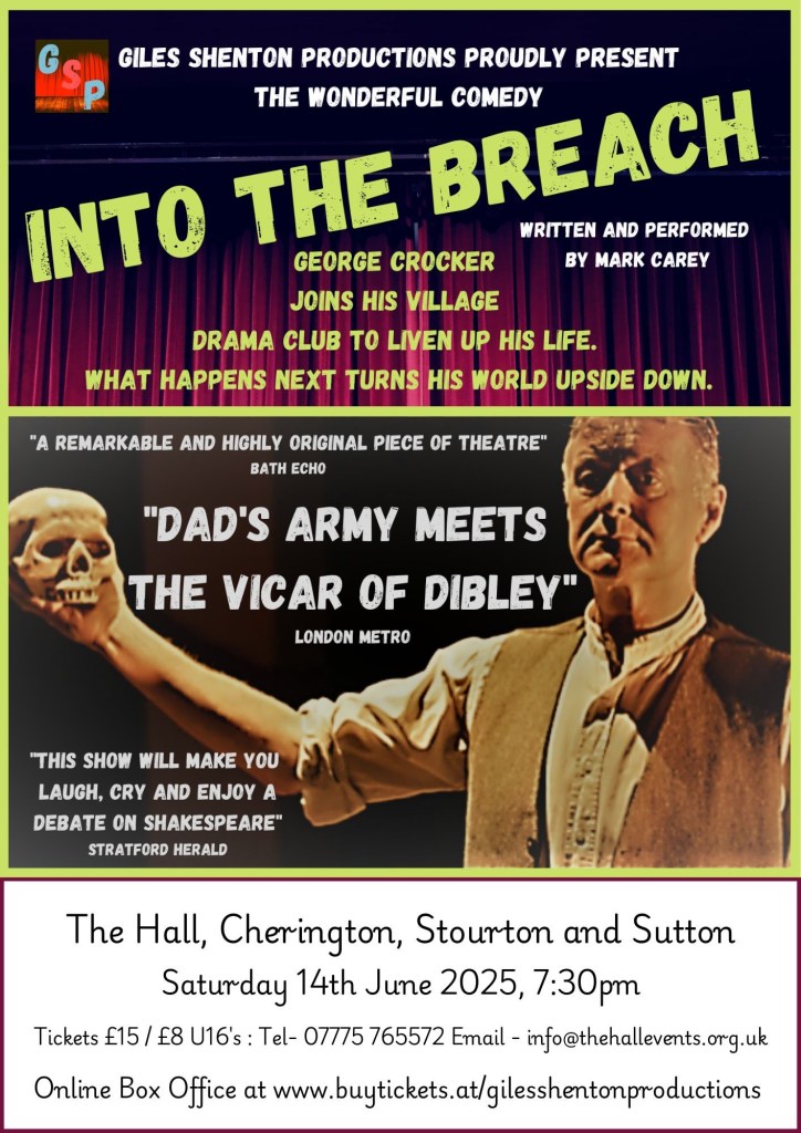 You will have a chance to buy tickets for the next Theatre Night at The Hall – ‘Into The Breach’. See poster below and link here.