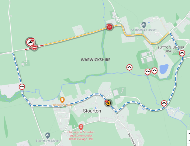 The road between the bottom of Cherington Hill and Sutton Under Brailes will be closed to vehicular traffic from 12 – 16 June to repair a significant leak.