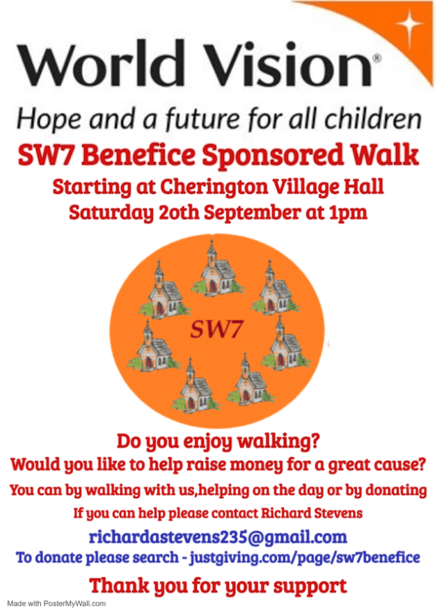 SW7 Benefice Sponsored Walk for World Vision from The Hall on Saturday September 20th at 13.00