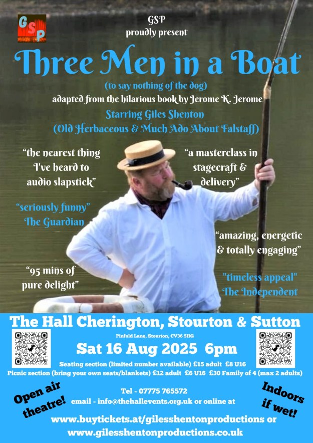 Join us on Saturday at The Hall on 16th August for a Giles Shenton open-air Performance of “Three Men In A Boat”, adapted from the classic book by Jerome K. Jerome.