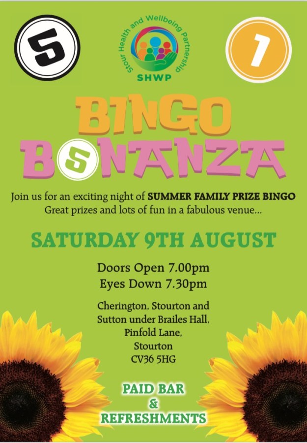 It’s time for the next Family Prize Bingo Night at The Hall, organised by the Stour Health and Wellbeing Partnership – SHWP