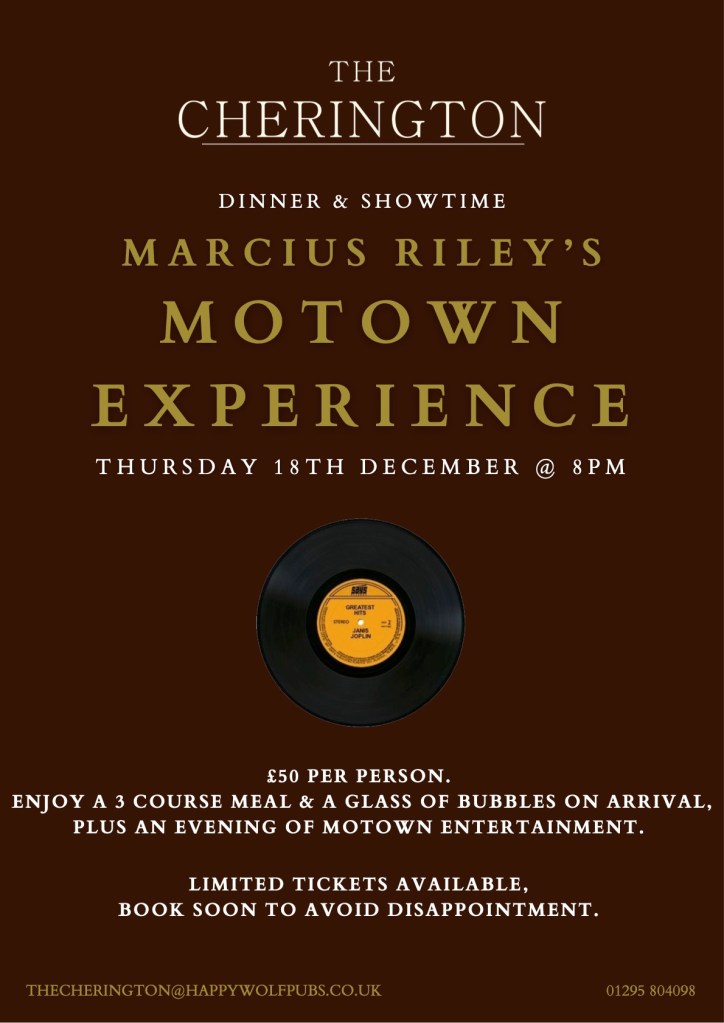 - Marcus Riley showcases the best of Motown in a ‘Motown Experience‘ on December 18th from 8.00.