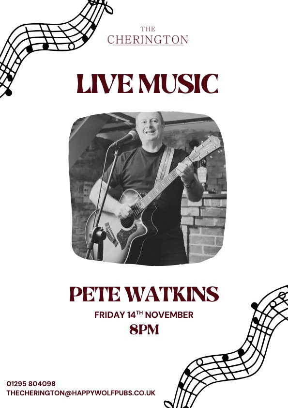 - Live Music with Pete Watkins singer and guitarist who is performing on Friday 14th November from 20.00.