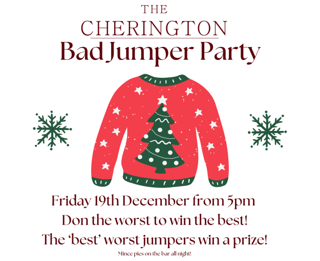 Friday 19th December – The Cherington Bad Jumper Party from 5pm: